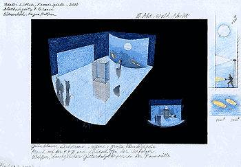 3. Akt: Der Wald Es ist Nacht, Drei Holzfäller, der Mond, die Bettlerin, der Bräutigam, die Braut, Leonardo